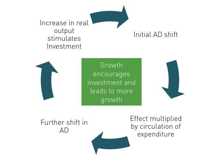 Although the focus in this model is often the short term aggregate demand effects it is crucial to make the connection to productivity and aggregate supply. As investment will increase the use of capital in the productive process this has the potential to increase productivity, the productive capacity of the economy. This will help to shift LRAS and produce sustainable economic growth by increasing real output without inflationary consequences.