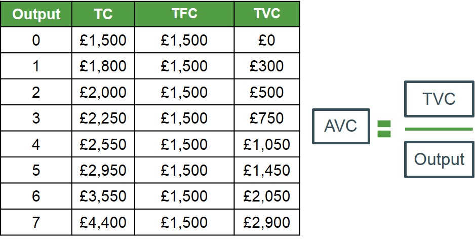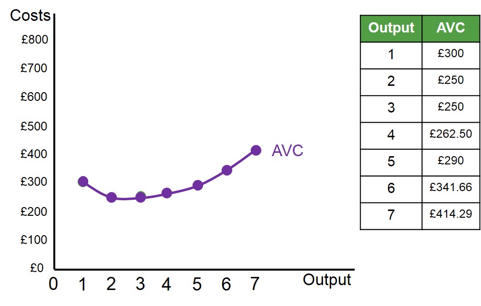 Below is an illustrated example of how to calculate the AVC for different levels of output for a hypothetical firm. These points can then be used to map out the AVC curve for this firm.