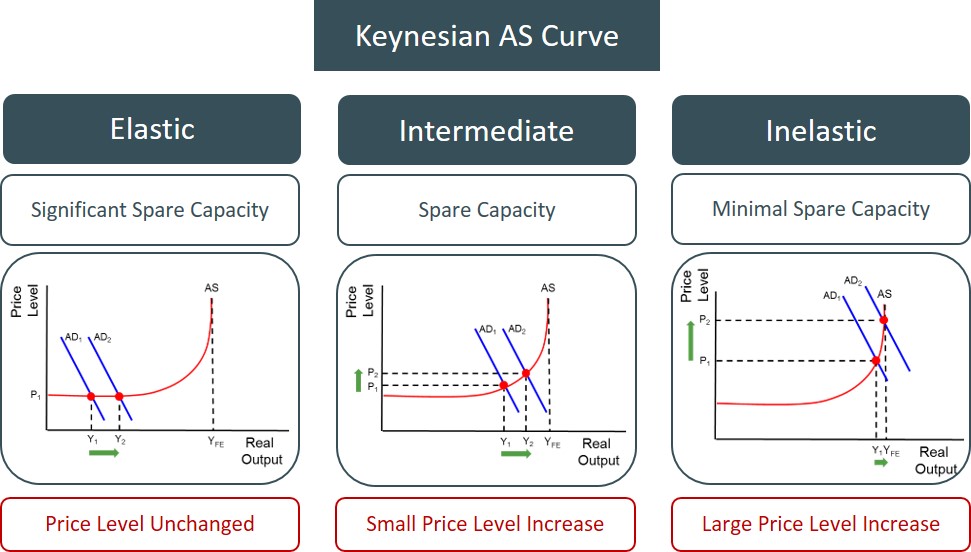 To illustrate the impact of spare capacity on inflationary pressures, it is best to use the Keynesian AS curve.