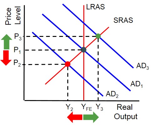 • Expansionary Fiscal Policy - shifts AD curve to AD3.