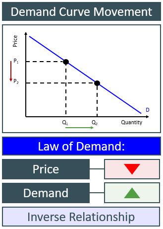 A demand curve movement is created when the price of a good or service, that the demand curve represents, changes. Because of the inverse relationship between the price and quantity demanded of a good, when the price of a good falls the quantity demanded rises, whilst in the case of a price rise the opposite occurs. This i all subject to the law of demand. If any non-price factor changes then this causes the demand curve to shift at every given price.