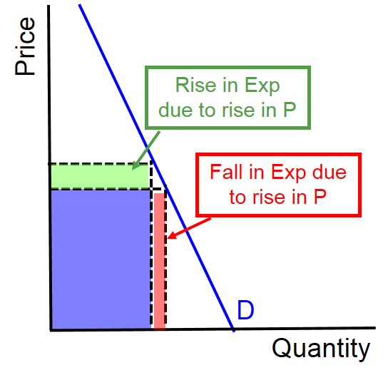 This diagram highlights the changes in expenditure for a producer that occurs when there is a small price rise in a market with inelastic demand. When a demand curve is relatively inelastic, it means that consumers are price insensitive to changes. In this instance, a price rise leads to a small fall in demand as consumers refuse to switch to alternative cheaper substitutes.