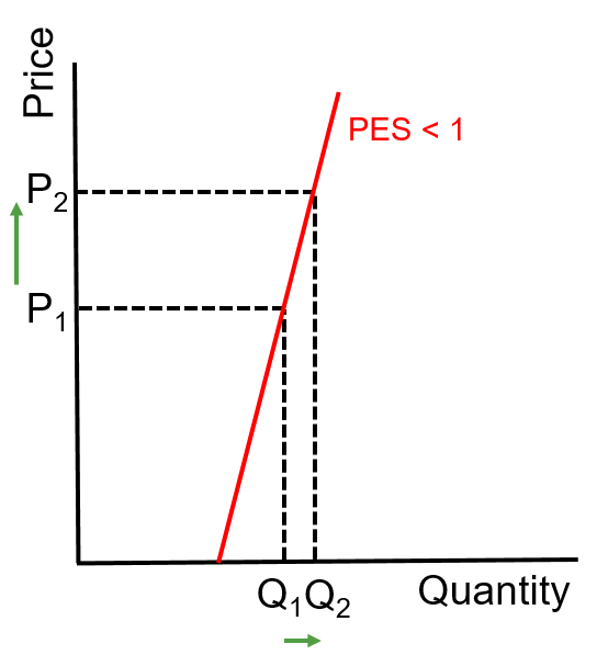 When the proportionate change in supply is less than the proportionate change in price. In this case the PES elasticity value will be below 1.
