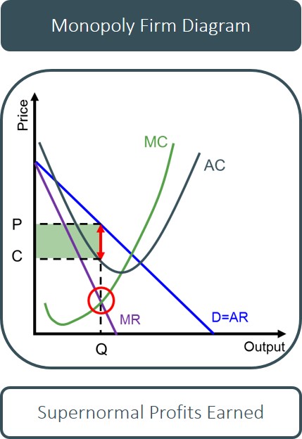 As usual, firms in the market profit maximise where MR=MC and due to the fact that they have some market power as a result of product differentiation, the price that they charge is represented by the price they can set according to the demand curve for that specific quantity of goods. As this price is predominantly above the average cost of production, firms can make supernormal profits. However, it is important to note that supernormal profits are not always achieved n the short-run, as the ability to make profit in the shot-run depends on the position of the firm's average cost curve. This means firms can also make normal profit or economic losses in the short-run as well. The three possible short-run outcomes for firms is shown below: